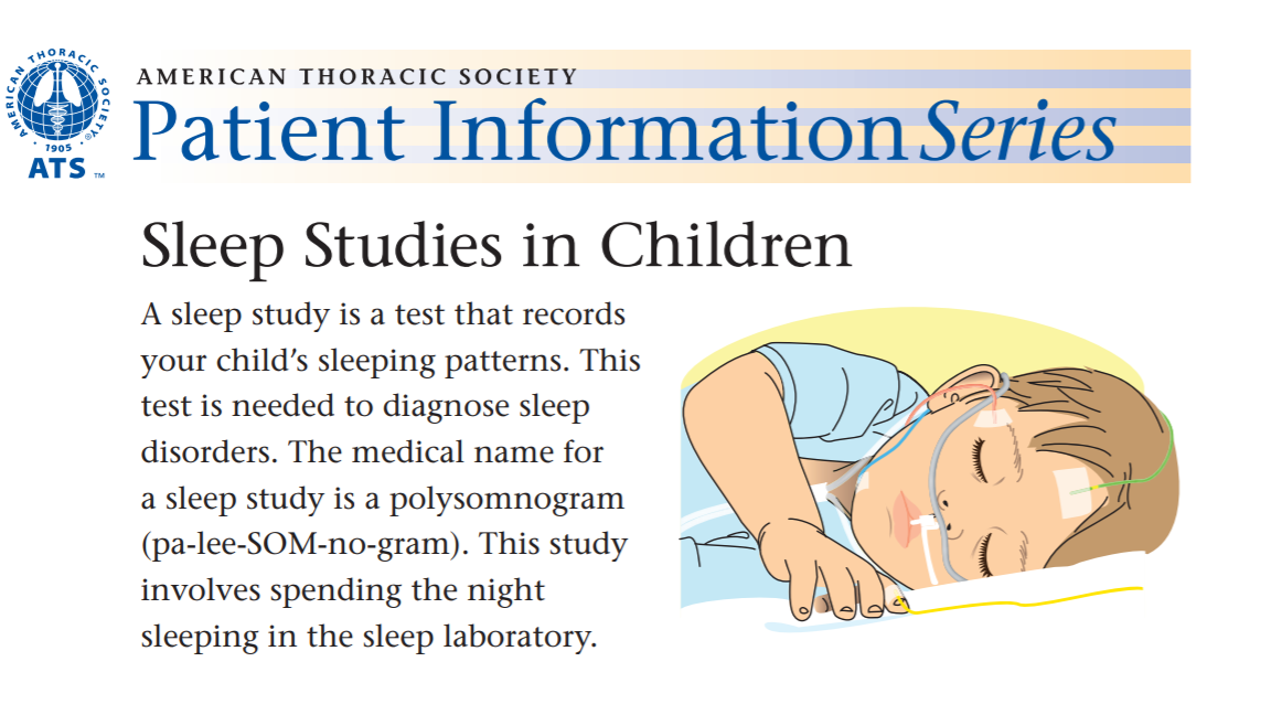 1. 2015 Principal Author. Narang I, Ersu R. Sleep Studies in Children. American Thoracic Society Patient Information Series.